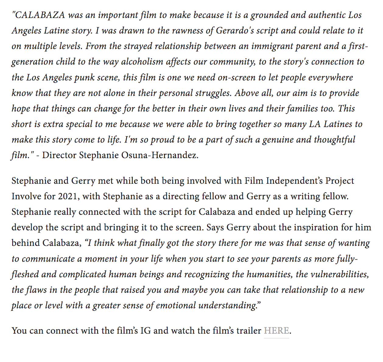 Film Independent Project Involve 2021